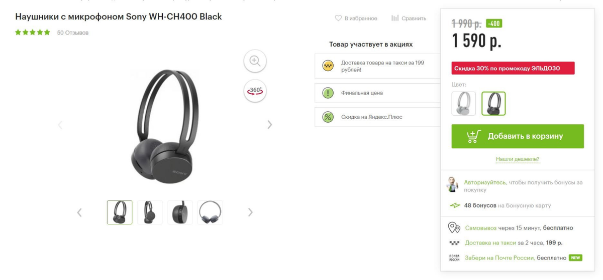 🔥Bluetooth-наушники Sony WH-CH400 за 1113₽ ( ̶1̶5̶9̶0̶₽̶) в Эльдорадо.