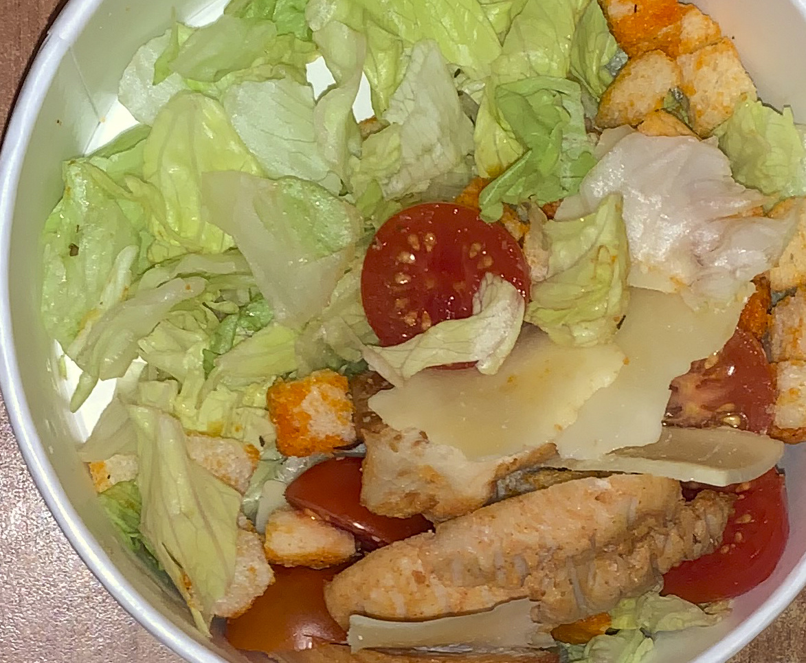 А дело вот в чем. Как-то заказали в одной пиццерии этот салат. И привезли нам вот что (это до размешивания соуса):