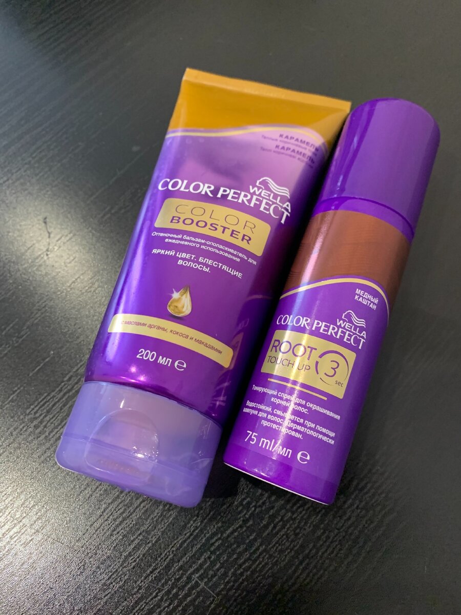 Оттеночный бальзам Color Buster, у меня карамельный- подойдёт для тёплых Блондов и средне- темных тёплых оттенков. бальзам имеет неяркий цвет, который не красит руки. Применяется как классический бальзам для волос. что мне понравилось: приятный неяркий аромат облегчает расчёсывание, придаёт мягкость холошо увлажняет оттеняет цвет, придавая ему блеск расход средний легко распределяется Хорошее недорогое средство для окрашенных волос👌🏻 Тонирующий спрей для корней Root touch up отлично справляется со своей задачей: закрашивает отросшие корни, в том числе и седые, хорошо держится в течение дня ( на шапке следов не заметила) легко смывается шампунем Кожу красит тоже хорошо, поэтому при нанесении закрывайте лицо. Кстати, таким спреем классно делать веснушки поверх макияжа👌🏻 Для своего ценового сегмента средства отличные 🔥