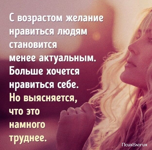 Каждый в своей жизни (уверена на 100%) проходил или проходит момент, когда важно оправдать чьи-то ожидания, дружить со всеми, казаться открытой и общительной. Мы, сломя голову, пытаемся натянуть на себя чьи-то идеалы, видение жизни, оценки.... В этой круговерти мы все время недотягиваем, не успеваем сделать то, что так от нас ждали, не всем нравимся, от чего страдаем. Забывая задать один важный вопрос: А ДЛЯ ЧЕГО МНЕ НАДО ВСЕМ НРАВИТЬСЯ? Ну, реально, в чем суть? Посмотрите кто пытается нам навязать "как надо"? Часто у кого за душой ни гроша учат нас зарабатывать, девушка после трех разводов, живущая с кошками, учит строить личную жизнь, родители (уж извините)), имеющие качественное образование, но работающие кассирами в Ашане, учат нас строить карьеру "Хорошо учись и станешь человеком". Хочется спросить каким? Каким человеком я стану? Если буду стремиться забыть себя, свои искренние желания, запихивая свое мнение в ... и сквозь слезы подчиняясь обстоятельствам и чужим меркам. Кем я в и
