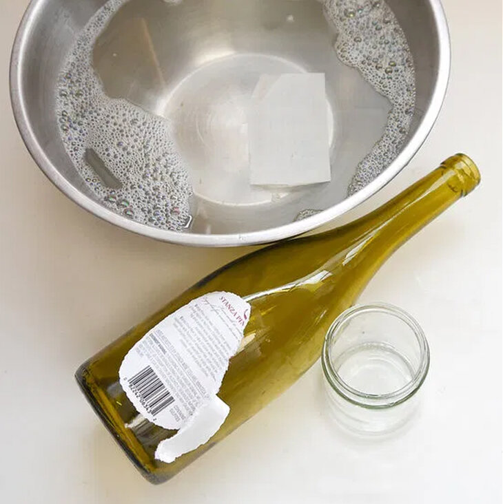 Первое, что нам нужно сделать - это снять с наших бутылок этикетки. Для этого нам нужно ненадолго замочить наши бутылки в теплой воде, чтобы этикетка немного отошла.