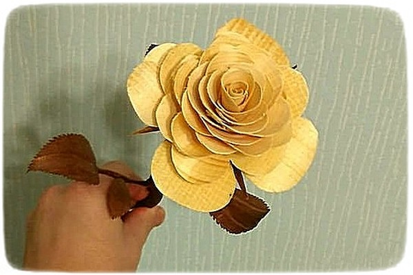 Затем изготовляем веточки и листики. Вырезание веточек может быть и заодно со стеблем, но это будет сложнее. Первая веточка прямая, получается в виде зубочистки, форма остальных должна уже иметь изгибы.