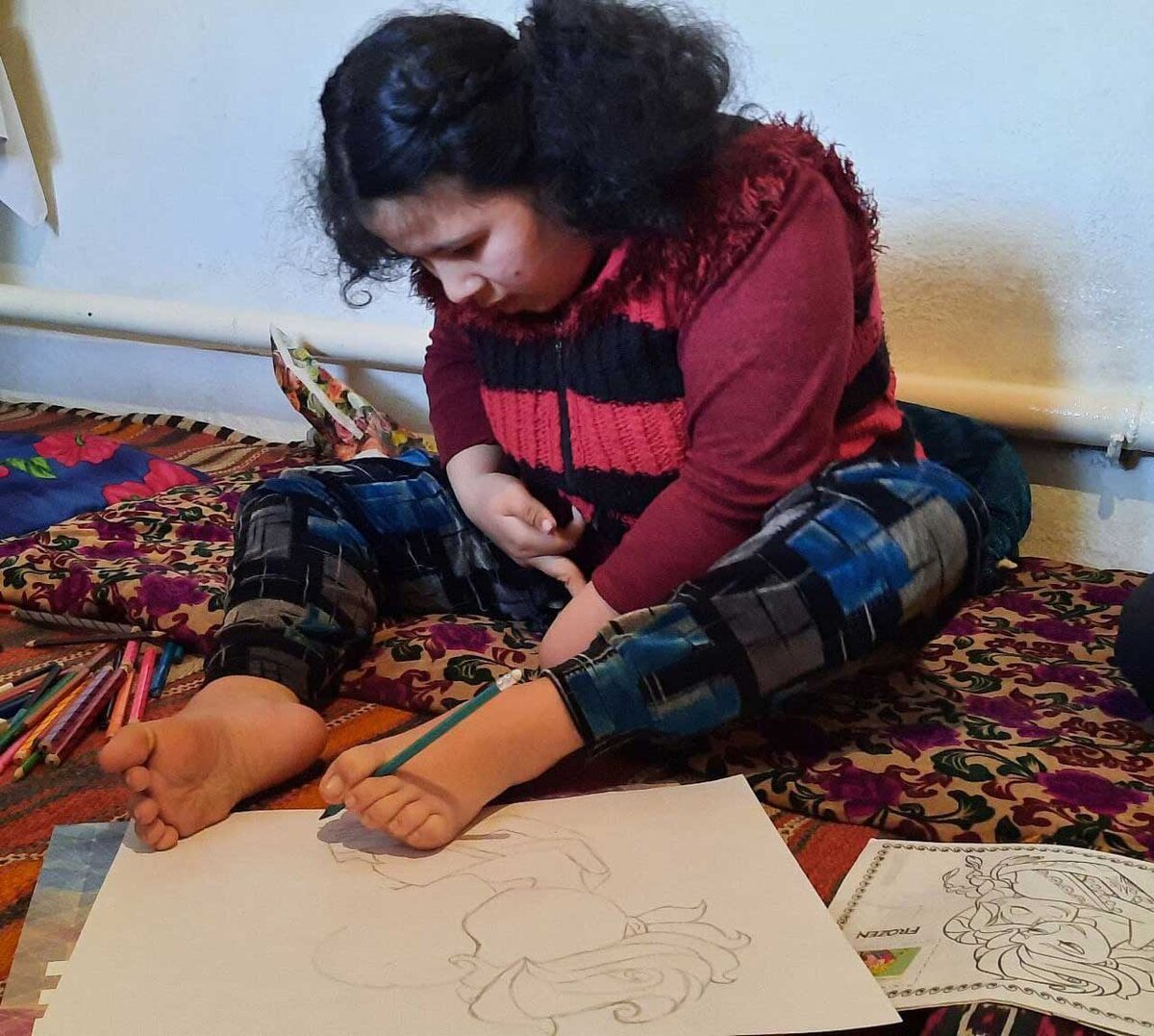 В Карши живет необычная девочка - Севинч Нарзиева. Ей 15 лет. Необычное в ней то, что, несмотря, на церебральный паралич, она прекрасно рисует. И делает это… пальцами левой ноги.