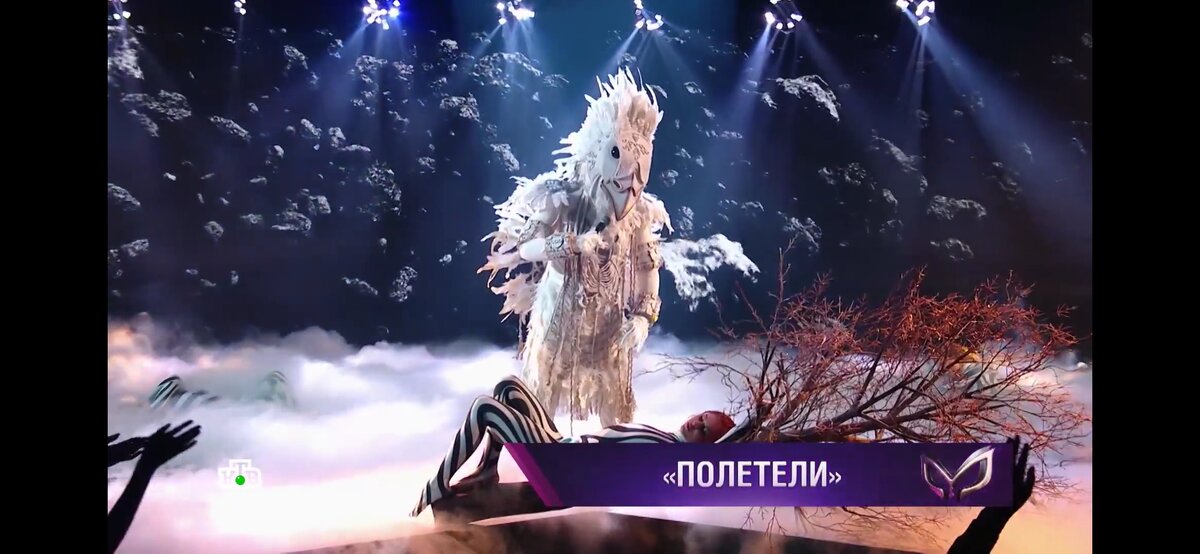 Пингвин исполнила замечательную песню как всегда, очень профессионально. Она опять с яйцом. В соцсетях прочитали слово яйцо наоборот и получили цой я. Теперь все считают, что там Анита Цой. И в принципе, после прошлого сезона, где её видели под несколькими масками, это было бы логично. Члены жюри тоже считают, что там Анита Цой, но Филипп не хочет "сразу её сдавать", поэтому на публику решительно отрицает, что это она. Если там опять окажется не Анита Цой, я просто лопну от смеха. У жюри также есть версии, что это Азиза и Светлана Сурганова. Время покажет, кто под этой маской, пока понятно одно, это кто-то очень хорошо поющий.