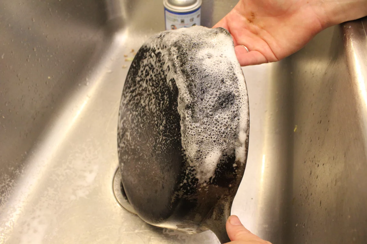 Единственный минус – любимая посуда так закоптилась, что кусочки от нагара уже откалываются и попадают в пищу. Но реанимировать её всё же можно.