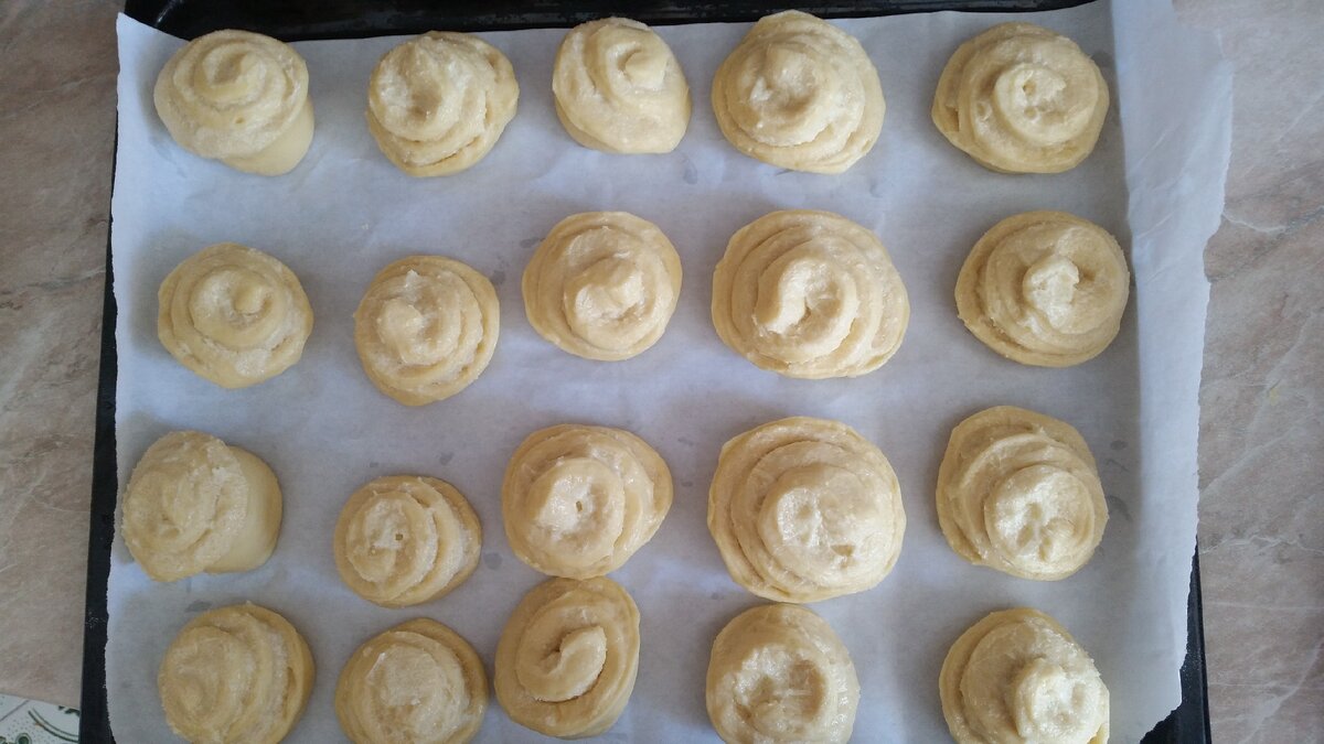 Все перемешать и замесить тесто.Оставить тесто на час подниматься.. Раскатать тесто толщиной 1 сантиметр.. Намазать внутри нашей начинкой (по желанию можно добавить изюм) закатать в рулет,нарезать рулет на части толщиной примерно в 2 пальца.Достаём противень застелить пергаментной бумагой,выложить все кусочки на противень и заправить все кусочки розочкой.Намазать наши розочки желтком. И оставить на 1 час подниматься. Далее отправляю в разогретую до 200° духовку.