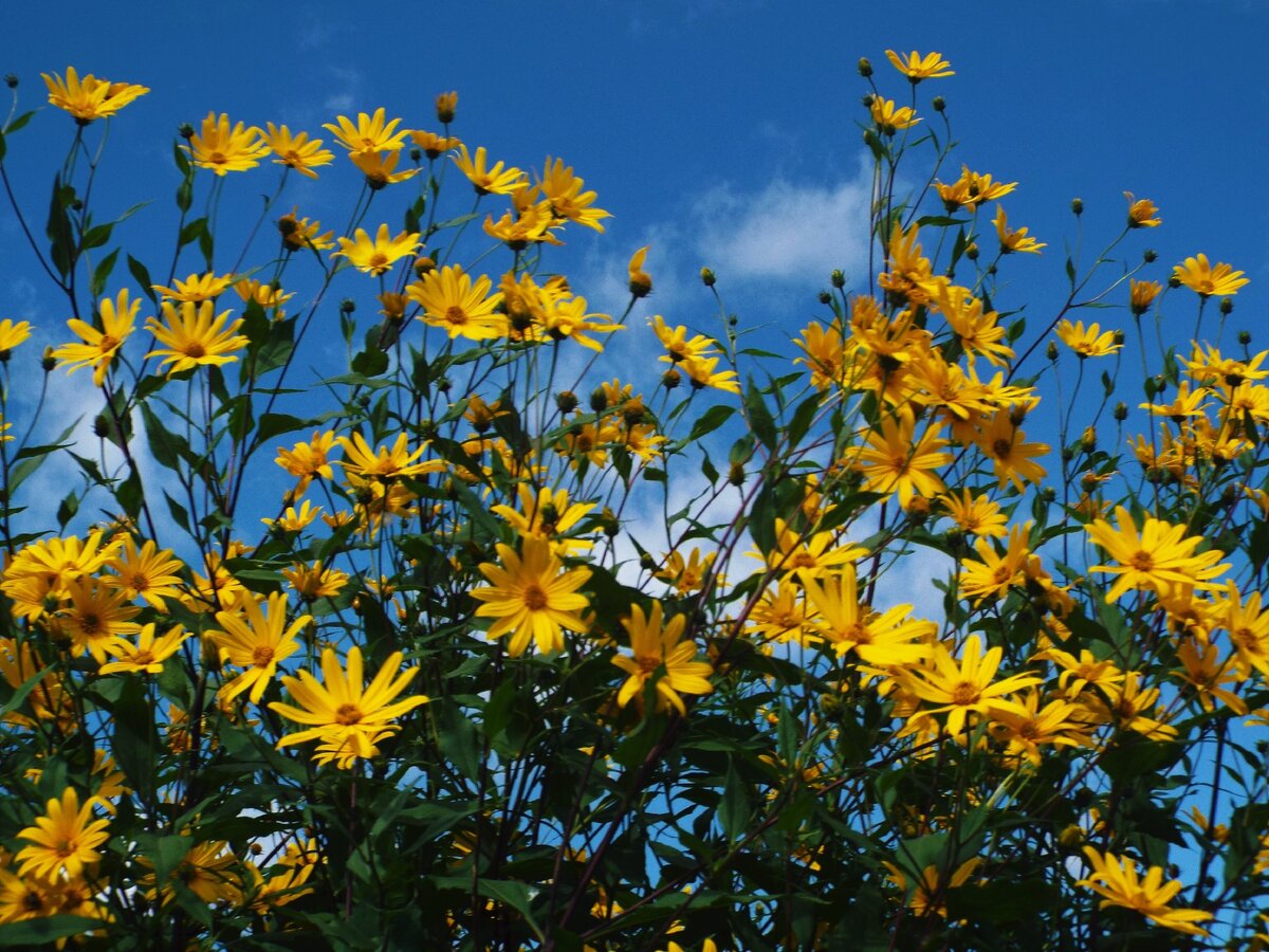 У меня топинамбур не растёт, но иногда появляется от соседей, у которых этого растения, на мой взгляд, переизбыток.