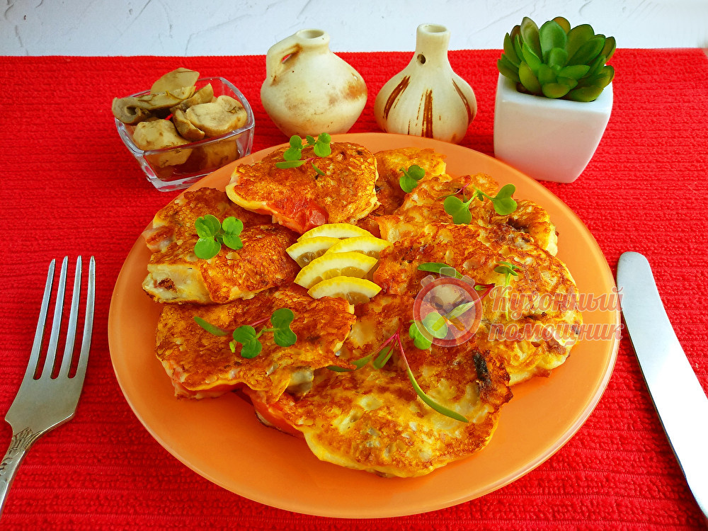 Меня этот рецепт покорил уникальностью и тем, что я могу использовать абсолютно любые залежавшиеся в холодильнике продукты. Делала оладьи «а ля пицца» и с мясной начинкой, и с рыбой, и с овощами, всегда получается новое блюдо с оригинальным вкусом.