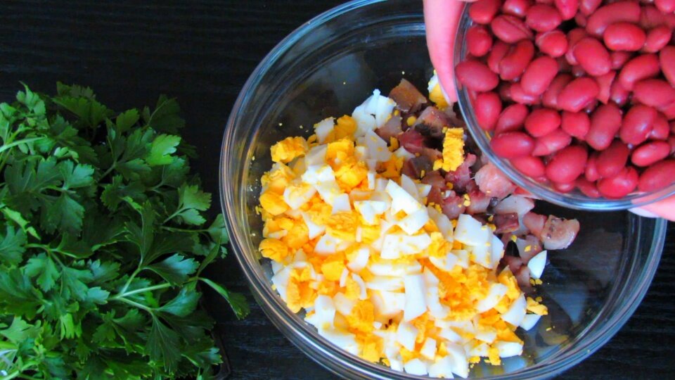 Хочу предложить Вам очень вкусный и простой в приготовлении салат с селедкой ( скумбрией) и консервированной фасолью. Очень хорошее сочетание ингредиентов! Действительно вкусно и сытно! Рекомендую приготовить!