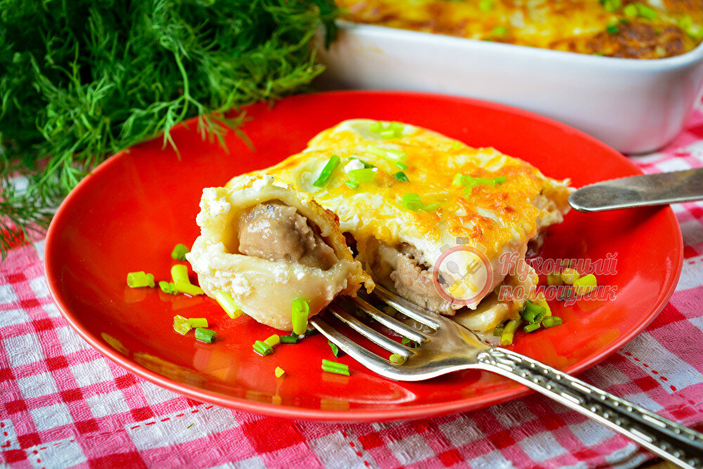 Для запеканки можно выбрать любую начинку, я делала и с мясным фаршем, и с мясо-капустным, и даже с рыбным. Пробуйте разные варианты и вы — обязательно найдете для себя идеальное сочетание.