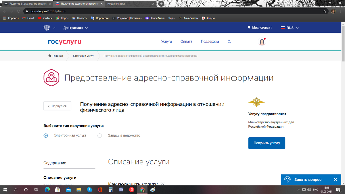 Заходим на сайт гос.услуг, в поиск вводим :"Получение адресно-справочной информации в отношении физического лица"