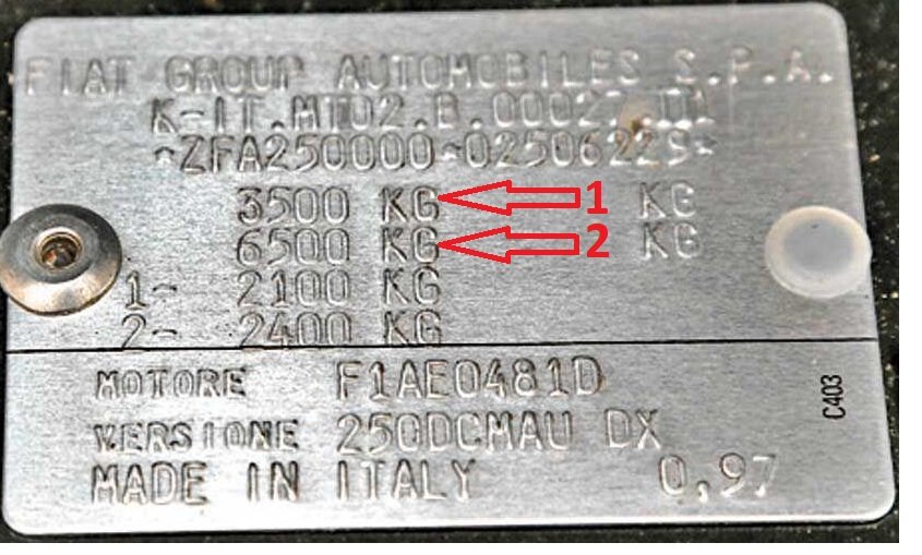 В первой строке указан максимальный вес загруженного автомобиля. Во второй строке указан максимальный вес загруженного автомобиля в составе с загруженным прицепом. Если на табличке указаны оба веса, то ваш автомобиль уже сертифицирован под перевозку прицепа и остаётся только установить сертифицированный фаркоп.