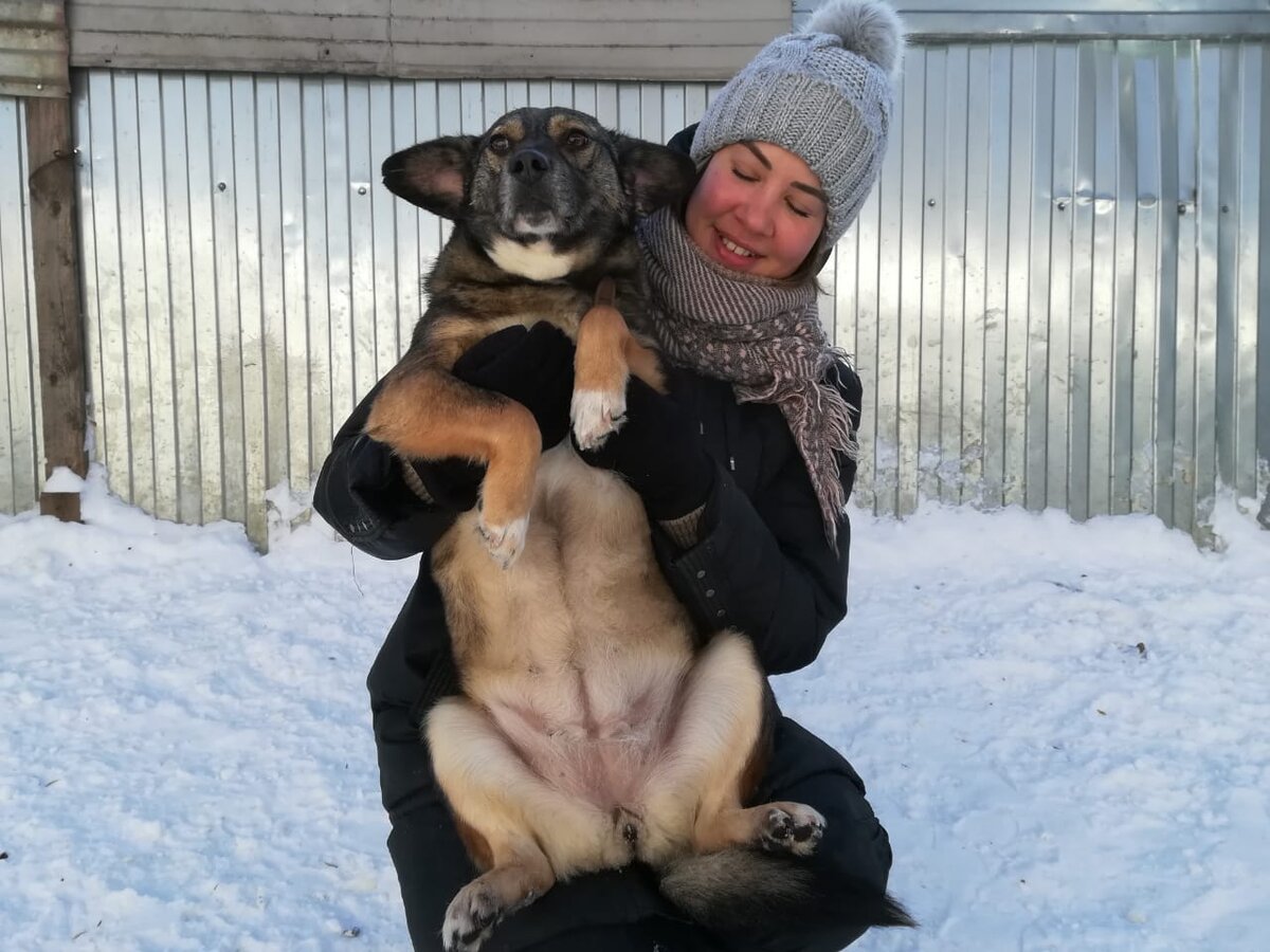 В январе 2020 она поступила в приют стройной глазастой девчонкой, а сейчас у Лены на руках глазастый бобер без шеи, полюбуйтесь!