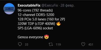 На днях появились подробности о новой линейке серверных процессоров AMD следующего поколения EPYC GENOA, которые перйдут на следующую архитектуру ядра Zen 4 core, информация просочилась в ExecutableFix . Детали указывают на различные спецификации предстоящей линейки и соответствующей платформы SP5, которая придет на смену существующей платформе AMD SP3, которая продержалась три поколения