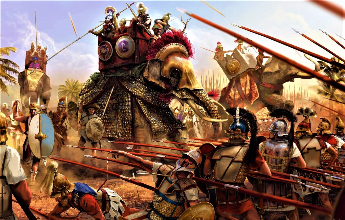 Вот как встречный бой боевых слонов рисует в своей «Всеобщей истории» античный греческий историк Полибий – главный летописец битвы при Рафии: «Некоторые слоны Птолемея бросились на врагов; помещавшиеся на слонах воины доблестно сражались с башен; действуя сариссами на близком расстоянии, они наносили удары друг другу, но еще лучше дрались животные, с ожесточением кидаясь одни на других.