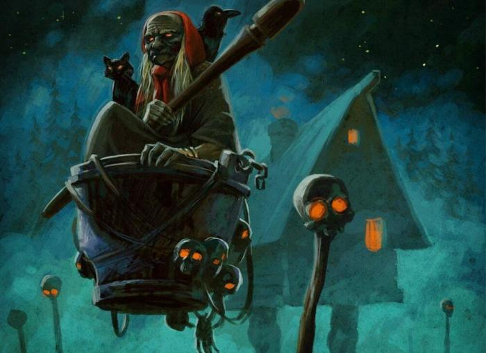 Баба-яга это не просто ведьма, а могущественное существо. Она обитает в дремучем лесу, который по преданиям является границей между двумя мирами. Избушка её обнесена забором из человеческих костей и черепов, питается человечиной. Вот почему её и прозвали "костяная нога".