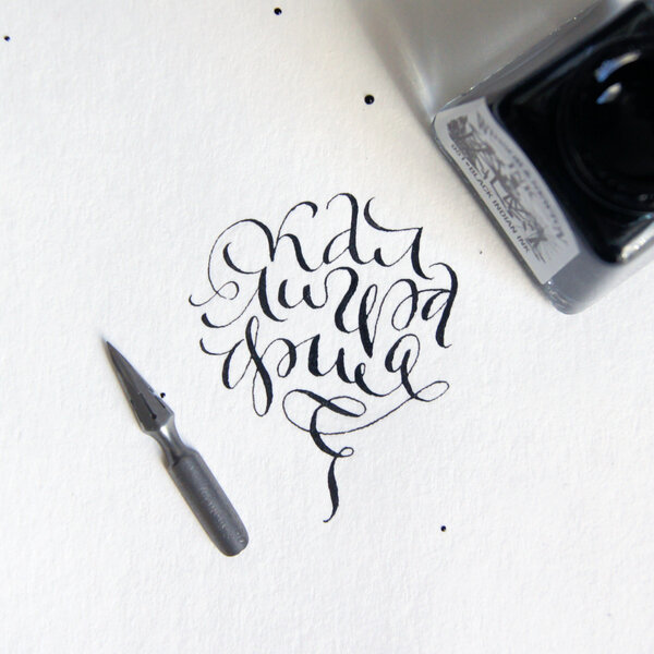 Профессиональные каллиграфы не макают перо в тушь, а заправляют его кисточкой-помощницей. Это помогает дозировать тушь, избегать нежелательных клякс и подтеков в процессе письма.