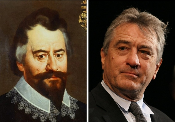 До чего же удивительной бывает жизнь. Смотришь на своих любимых актеров или музыкантов (а может и просто богатых и известных людей) и думаешь - они неповторимы. Но так ли это? Оказывается, многие из них уже побывали на старинных портретах. Давайте сравнивать! Начать я бы хотел с моего любимейшего из актеров, глыбы по имени Роберт Де Ниро. Я просто выпал в осадок с его удивительного сходства с портретом Иоганна Вогта (написал картину Бартоломей Стробель). Вогт был обычным польским помещиком, однако он удивительно похож на культового актера вплоть до родинки! Интересно, поляк часто говорил зеркалу «Are you talking to me?» Известный испанский художник Диего Веласкес вполне мог бы стать фанатом Игры Престолов. Все же не просто так он написал портрет Себастьяна де Морра, подозрительно смахивающего на Тириона, персонажа Питера Динклэйджа из сериала. Профессиональный шут при дворе короля славился своим остроумием и популярностью у дам. Прямо как Тирион! И снова Веласкес в деле. Себастьян де М