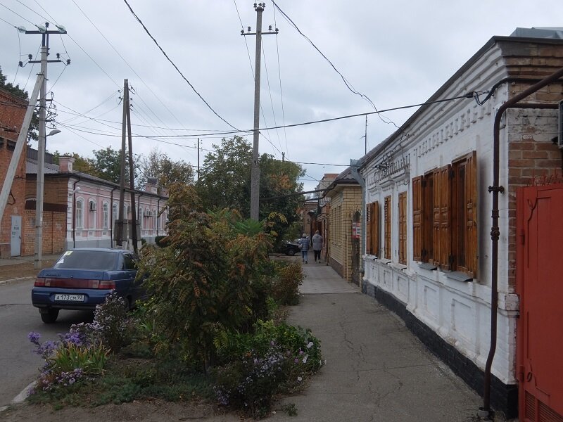 2. Да, конечно, моё негативное восприятие Ейска связано с хмурой осенней погодой, которая нас тут настигла. Если всего несколько дней назад в Черкесске было тепло и солнечно, то тут уже осень нас не баловала. С другой стороны, погода не помешала оценить то, что город Ейск (та его часть, что не примыкает к берегу и не связана с курортом) очень даже ничего. По-кубански ухоженный, живой южный городок вполне понравился.