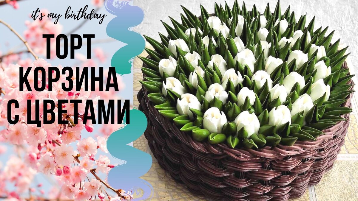 Торт " Корзина с тюльпанами " | Торт " Корзина с цветами " | Кремовый торт на 8 марта |