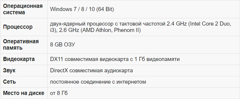 Минимальные системные требования