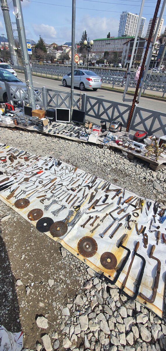 На импровизированных витринах (на ткани, расстеленной на земле) можно найти вполне полезные вещи. Например работающие сотовые телефоны и зарядные
