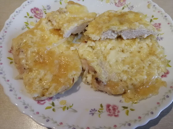 - Разрезаю куриную грудки на порционные кусочки и слегка отбиваю с двух сторон.