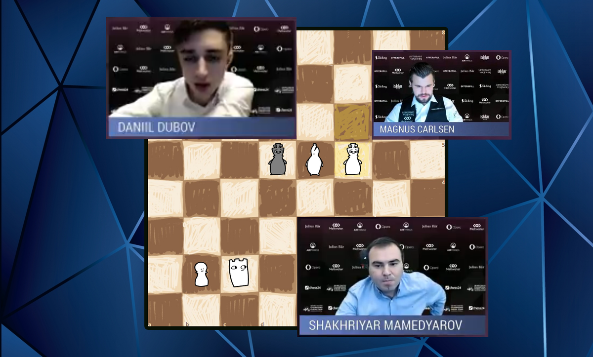 Даниил Дубов стоял в ужасной позиции против Шахрияра Мамедярова. В эндшпиле Даниилу не хватало двух пешек и казалось, что ничего интересного в этой партии уже не произойдет: