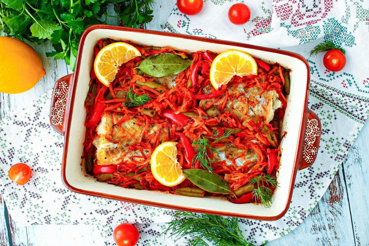 5 РЕЦЕПТ "ТУШЕНАЯ РЫБА В ДУХОВКЕ С ОВОЩАМИ"