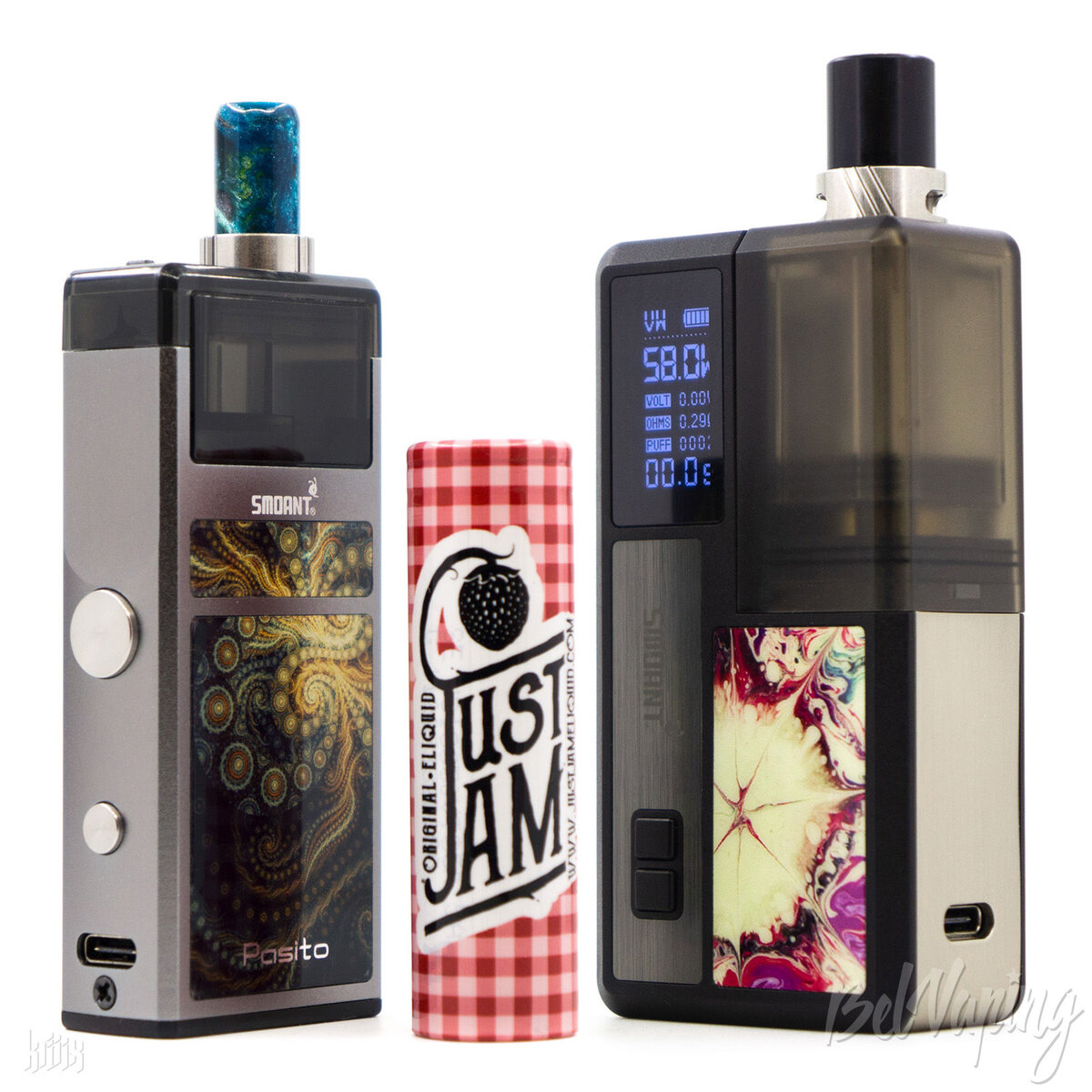 Сравнение размеров (слева направо): Vaporesso SWAG II. Smoant Knight 80, Vaporesso XTRA