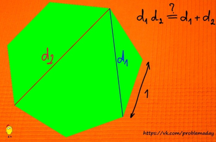 Вот еще одна задачка, в которую входят разные диагонали семиугольника. Не спешим листать вправо и подсматривать решение.