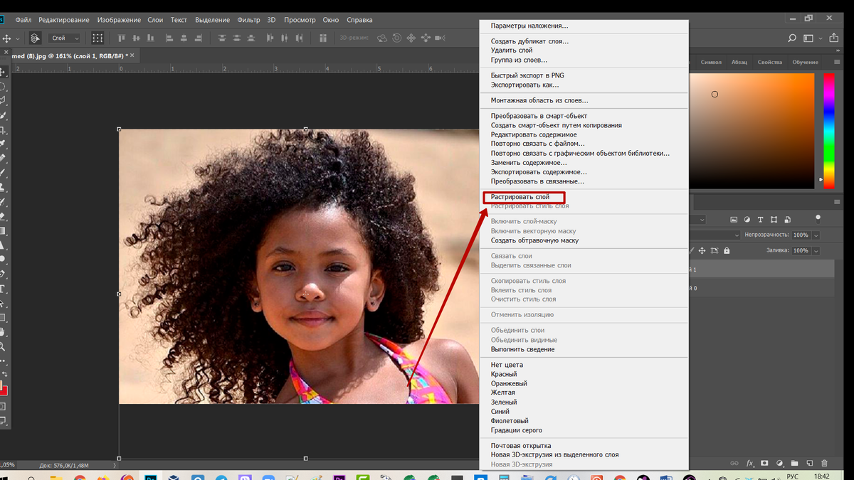 Чтобы их вырезать, растрируйте фото, которое надо вырезать нажав по слою правой кнопкой мышки