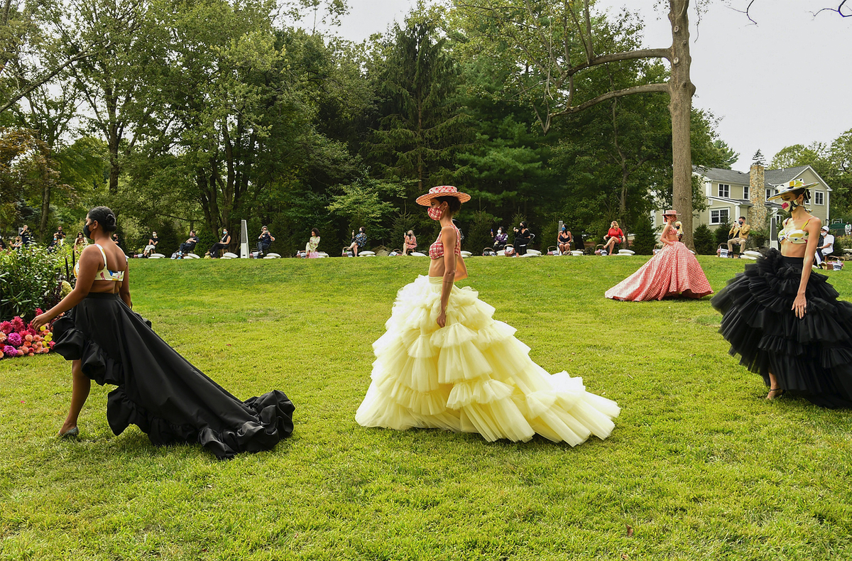 Многие показы сезона прошли на открытом воздухе и с соблюдением социальной дистанции. Christian Siriano Spring/Summer 2021