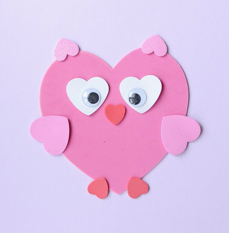 Тоже очень простая подделка в технике. Первое, что вам понадобиться, это вместе с ребёнком вырезать двадцать маленьких сердечек из белой бумаги. Потом их склеить между собой, как книжечку, и на каждой страничке написать крылатые слова любви. Потом вы вмест