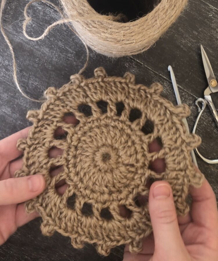 Тут небольшая подборка, какие ещё подставки из джута можно связать: