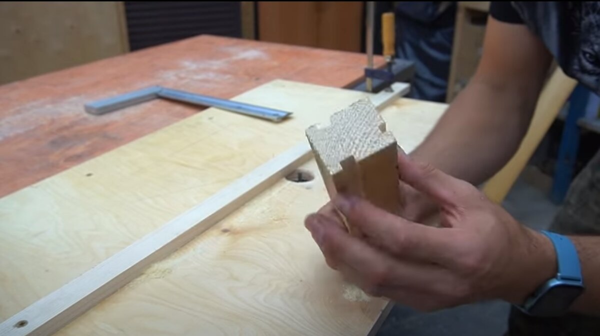 Всем привет друзья, сегодня сделаем полезную приспособу из фанеры толщиной 15мм для мастерской. Размечаем одну сторону на 50см, и отрезаем заготовку. Далее зачищаем наждачкой место спила от заусенец. Разметку делаю следующим образом, на ширину пропила отчертил линию. Это место будет для фиксации всей платформы. А остальной кусок черчу по диагонали, и нахожу центр. Фрезер буду встраивать маленький, так как он аккумуляторный. Снимаю с него платформу и переношу на фанеру, делаю разметку и засверливаюсь сверлом на 4мм. Фиксирую площадку на пару винтиков, для удобства зажал лист фанеры в тески и закручиваю болтики. Вставляю сам фрейзер и делаю центральное отверстие, а потом уже зайдём сверлом на 40мм, и расширим отверстие по больше. Добавил 4-ре отверстия с боку, именно через них будем крепить столешницу к верстаку. Этот крепёж самый простой и банальный, и с помощью него этот столик можно будет таскать по любой точке мастерской или рабочего объекта. Осталось сделать параллельный упор, для