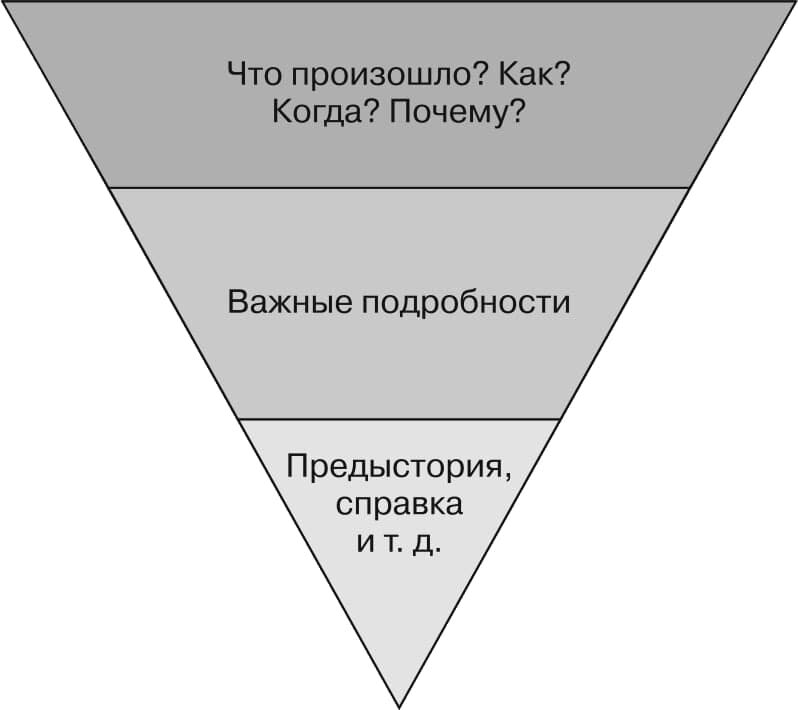 Принцип перевернутой пирамиды – структура новостного текста, где повествование идет от самого важного к менее важному.