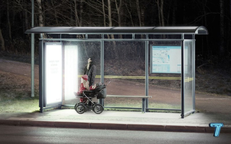 Город в Швеции использует специальные яркие лампы на своих автобусных остановках, чтобы бороться с короткими днями, недостатком солнечного света и депрессией жителей.