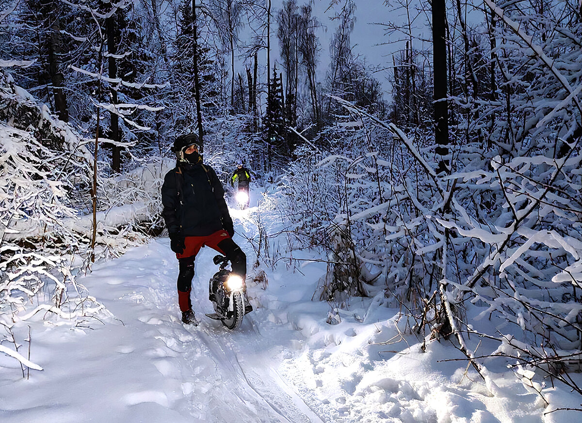 Ездить на моноколесе зимой по снегу абсолютно реально, по льду труднее, тут не всегда помогает даже резина с шипами. Прежде всего, как и в любом занятии, важно умение — в этом случае держать баланс и понимать дорожные условия. Всё это приходит с опытом.