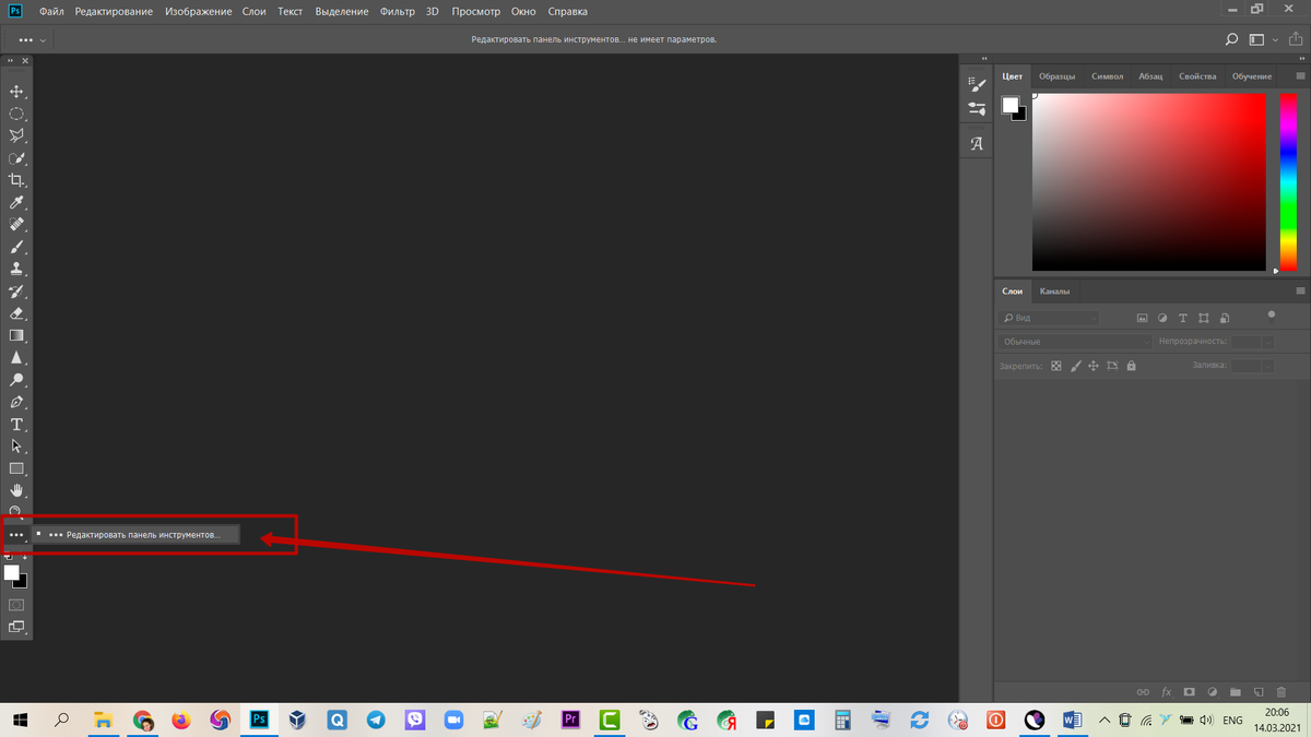 Для этого Заходим в Photoshop и открываем вкладку редактировать панель инструментов
