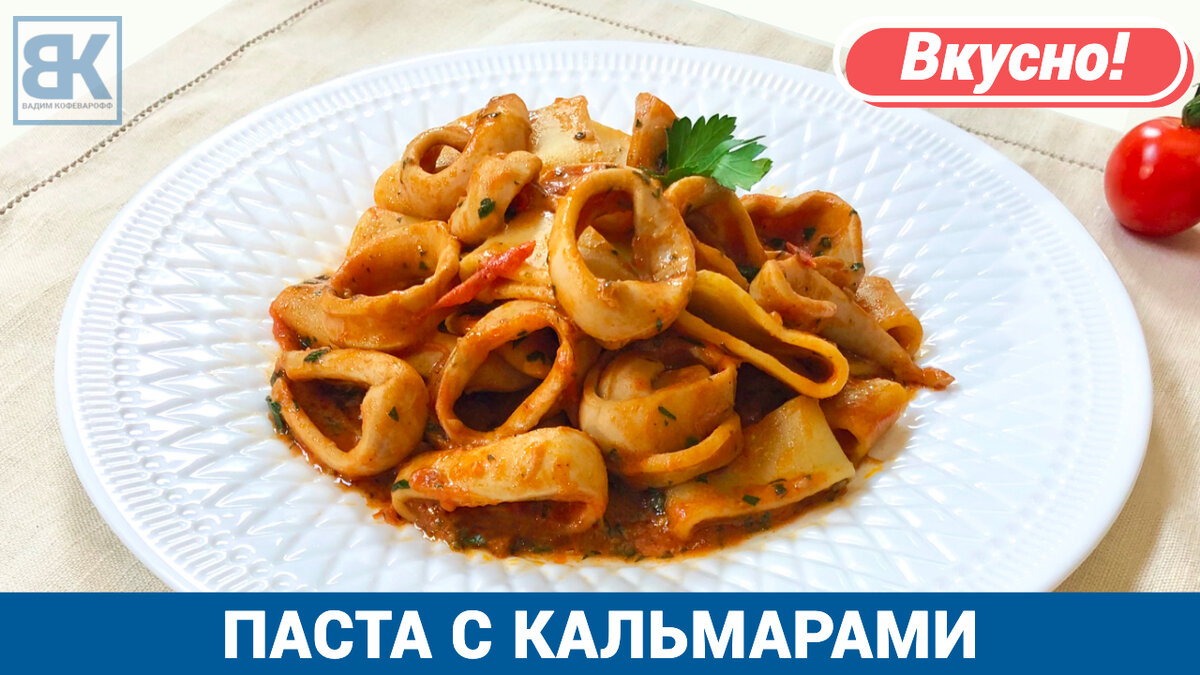Вкусный рецепт итальянской пасты с кальмарами и помидорами. Как приготовить итальянскую пасту по традиционному рецепту в домашних условиях. Паста Каламарата ( Calamarata ) с морепродуктами в томатном соусе неаполитанский домашний рецепт без сливок.