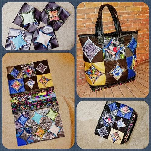 Но тут мне на глаза попался очень интересный блок "кафедральные окна", конечно, захотелось попробовать его сшить. Одним блоком, разумеется, дело не ограничилось)) И мне захотелось использовать результаты моего эксперимента с пользой. Как раз Степан мне тут попортить сумку успел бассейново - пляжную, а у меня блоки из плащевки. Очень удобно - отряхнула песочек и сумка чистая практически. А в бассейн если - то и отряхивать ничего не придется, и по объему все, что надо разместить - разместится.
