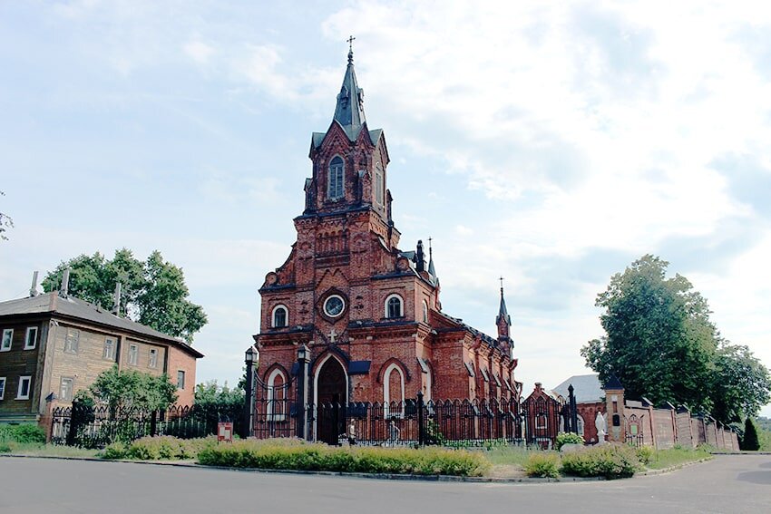 Начнем нашу прогулку по Владимиру от гостиницы "Мономах", где мы нашли пристанище на ближайшие сутки. Первое, на что следует обратить внимание по пути, - это католическая церковь Святого Розария Пресвятой Девы Марии. Соборы в готическом стиле из красного кирпича всегда особо привлекают мое внимание.