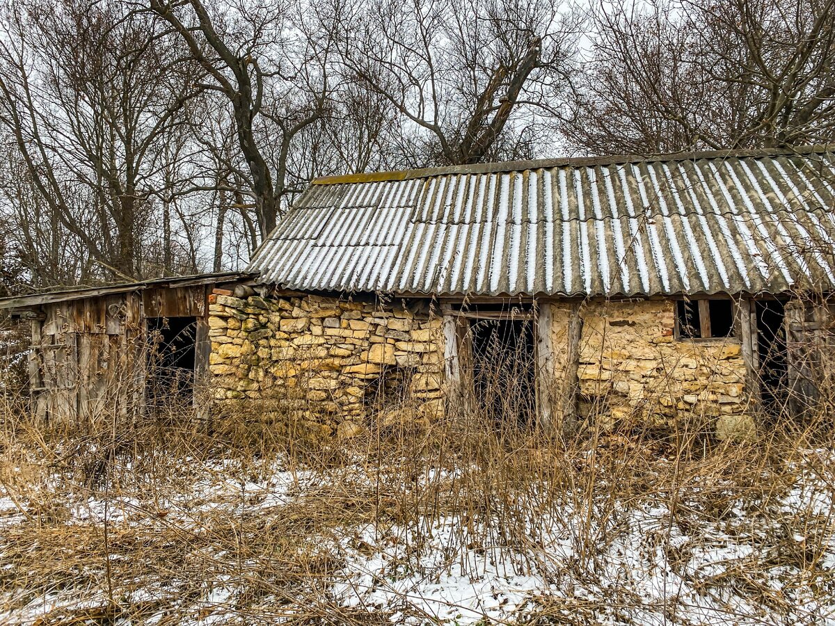 Рядом находился еще один сарай, который уже начал рушиться. И крыша, и часть каменных стен были разрушены.