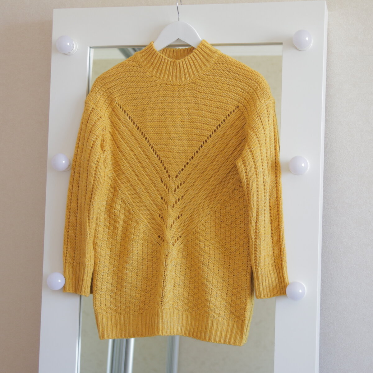 На первый взгляд, свитерок базовый. По идее, он должен легко вписываться в гардероб. Но мне почему-то сложно было сочетать его с остальными своими вещами. Свитер чересчур длинный для того, чтобы заправлять его в юбку/джинсы. Но недостаточно объёмный для того чтобы носить навыпуск.