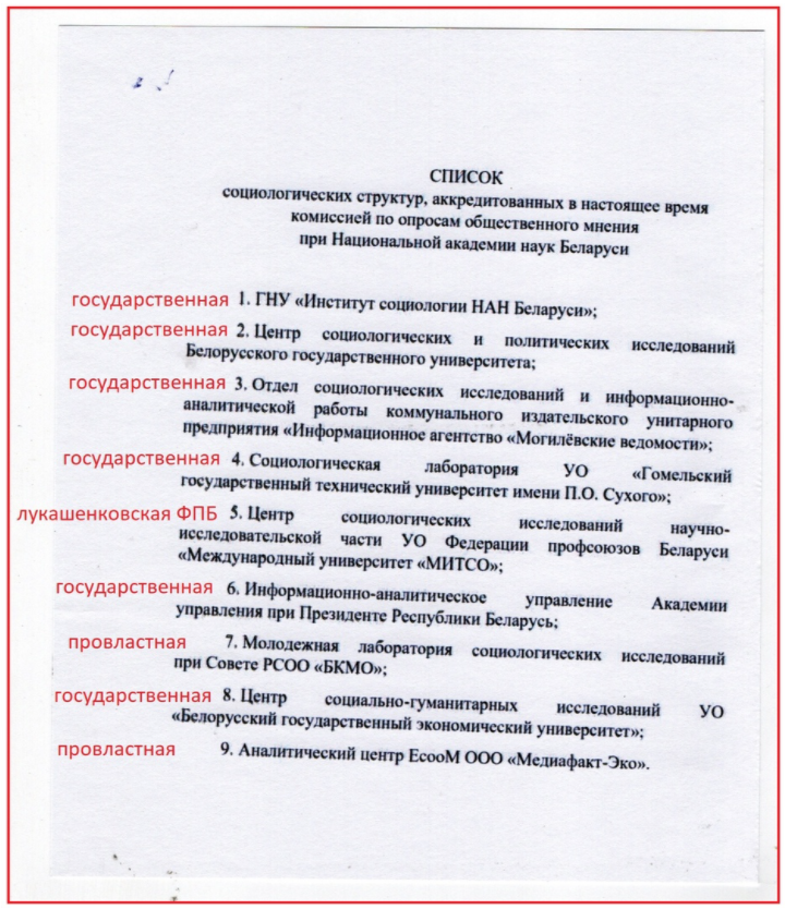 Стоит сделать важное уточнение, прежде чем продолжать рассказ. Один из ключевых моментов заключается в том, что в Беларуси была уничтожена независимая (от государства) социология. Белорусское законодательство запрещает проведение социологических опросов по общественно-политическим вопросам без аккредитации. А все аккредитованные организации — это либо государственные учреждения и их подразделения, либо провластные организации, чья провластная направленность очевидна и не особо скрывается. До 2016 г. в Беларуси проводил опросы независимый НИСЭПИ, данные которого хоть и отличались от данных ЦИК, но всегда показывали победу Лукашенко в первом туре. Но НИСЭПИ не проводит больше исследований с 2016 г., т.к. вся инфраструктура была властями разгромлена. Еще иногда опросы проводит Белорусская аналитическая мастерская в Варшаве (BAW), но относительно выборов 2020 г. никаких исследований она не проводила. Поэтому к 9 августа мы приходим с полным незнанием того, сколько % населения действительно поддерживает Лукашенко, а сколько — иных кандидатов.