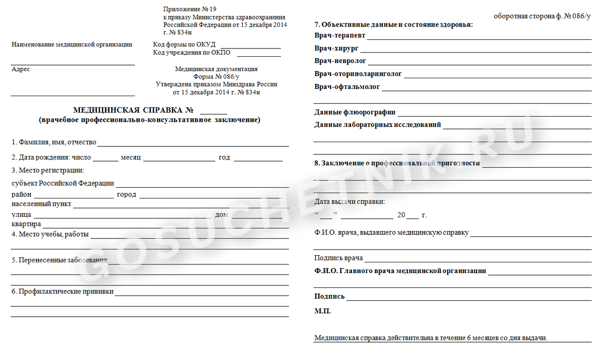 Вот как выглядит справка 086/у для поступления в вуз, колледж или для приема несовершеннолетнего на работу: При прохождении медосмотра проверьте, какой бланк медсправки 086/у вам выдан: новый или устаревший формат.