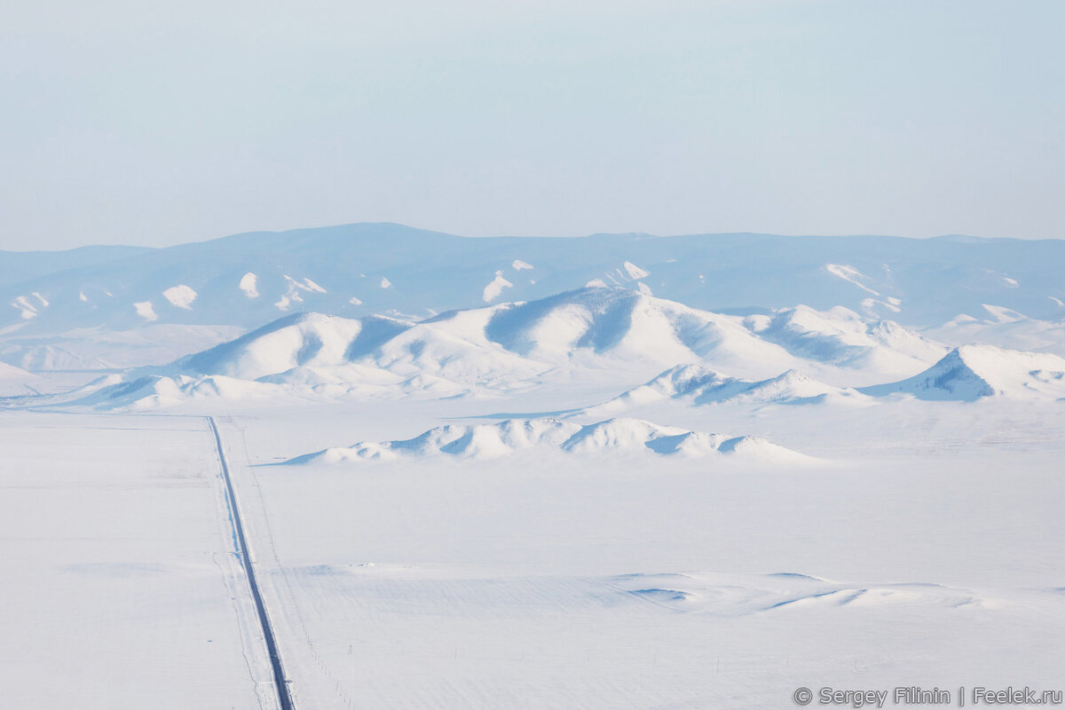 Со смотровой дорогу видно примерно на 50 километров вперед, вплоть до следующего перевала через Уюкский хребет за Тураном и Уюком.