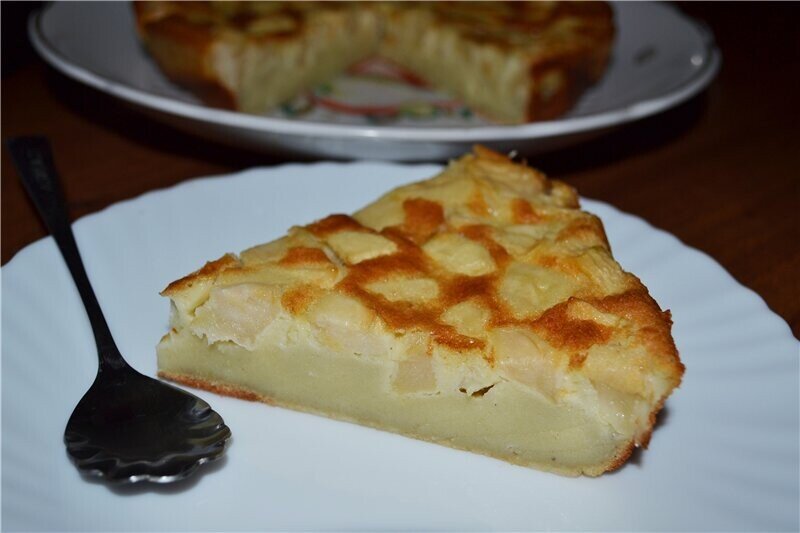 Яблоки почистить, удалить сердцевину и косточки, нарезать небольшими кубиками/дольками. В кастрюльке растопить 75 г сливочного масла, добавить яблоки и тушить на среднем огне около 10 минут. Муку просеять в миску, добавить яйца, 4 ст.л. сахарной пудры, соль, тщательно перемешать венчиком и постепенно влить молоко, продолжая мешать, чтобы не было комочков. Добавить яблоки (я ещё добавила корицу). Полученную массу перемешать и вылить в форму для запекания (либо порционные формочки), смазанную сливочным маслом. Выпекать в разогретой до 180°C духовке около 30 минут.