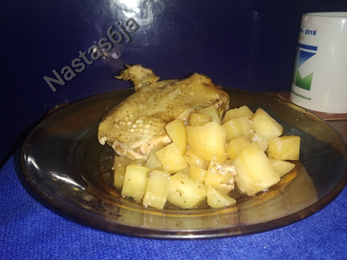 Честно признаться, хоть курочка и получается вкусной, но картошку запеченным этим способом я ем с превеликим удовольствием, она пропитывается мясным соком, и приобретает отменный вкус, к тому же получается настолько нежной, что тает во рту.